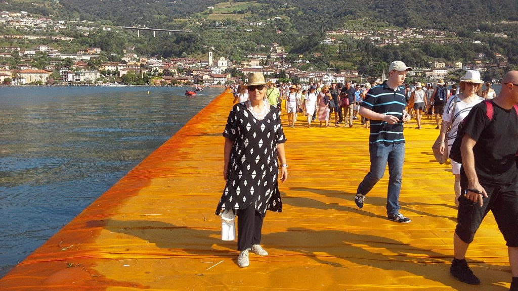 Ebbene sì ci sono andata anche io. Ho resistito fino all’ultimo che già pensavo non fosse il caso di fare ore di attesa in piedi sotto il sole per camminare sulle acque con la benedizione di Christo. Ma ho ceduto all’ultimo su insistenza dell’amico Lucio, desideroso di una “bella avventura” ma soprattutto per vedere mio figlio Simone, ormai milanese, che ci andava con un’amica proprio lo stesso giorno.