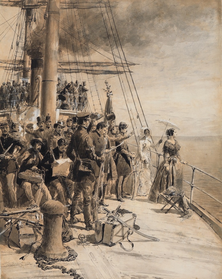 Edoardo Matania_Partenza da Napoli di 180 volontari colla principessa Belgioioso, tecnica mista su carta, 48.5 x 38.5 cm