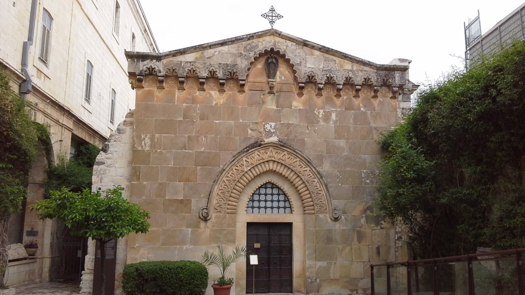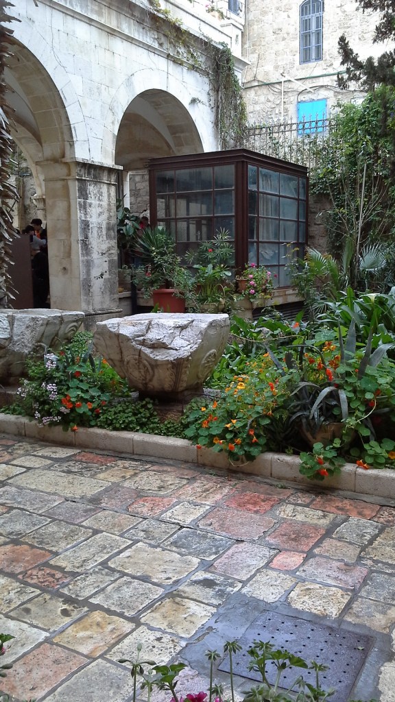 Gabriella Poli – Gerusalemme – “Io sono Gerusalemme!” All’improvviso appaiono nel buio del locale luci che illuminano solo alcuni particolari mentre la voce narrante ripercorre tutta la storia della città sacra. La voce ci rimbomba nel petto guidandoci attraverso i secoli in un viaggio da Gesù fino ad oggi. La toccante suggestione viene creata dall’installazione multimediale che dal marzo 2016 è aperta al pubblico presso il Convento della Flagellazione di Gerusalemme, da dove partono abitualmente i pellegrini che percorrono la Via Crucis. È un luogo molto caro alla tradizione cristiana, perché qui si ricordano la condanna di Gesù e il caricamento della croce e non è raro vedere, lungo i vicoli del suk, cristiani che si caricano una pesante croce di legno sulle spalle e faticosamente ripercorrono le antiche orme.