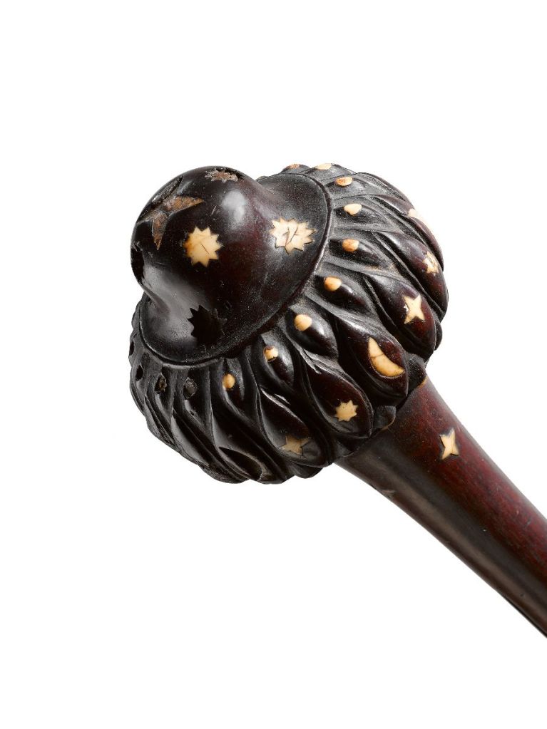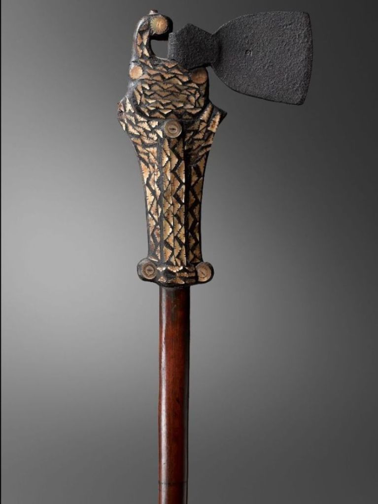 Molti bastoni del comando erano “scettri cerimoniali” e più che essere destinati ai combattimenti erano un’ostentazione con l’intento soprattutto di proiettare un’immagine di autorità e status. Pensiamo all’enorme Siriti, pesante mazza a due mani alta 152 cm. proveniente dal British Museum, tra le più grandi rappresenta nel suo insieme una figura maschile stilizzata.