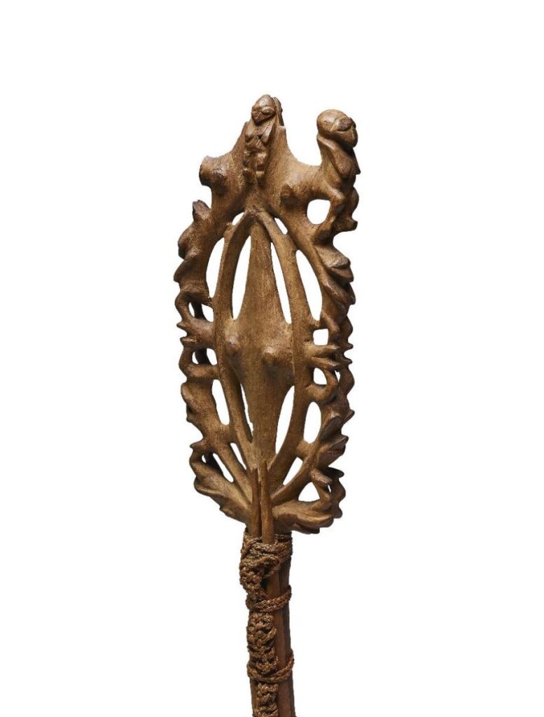 In tutto il Pacifico le dimensioni e la forma di un bastone, il materiale di cui era realizzato e il suo grado di elaborazione – con intarsi o aggiunte di materiali di grande pregio come conchiglie, piume o avorio di balena – veicolavano messaggi sulla condizione sociale di chi lo possedeva o custodiva.