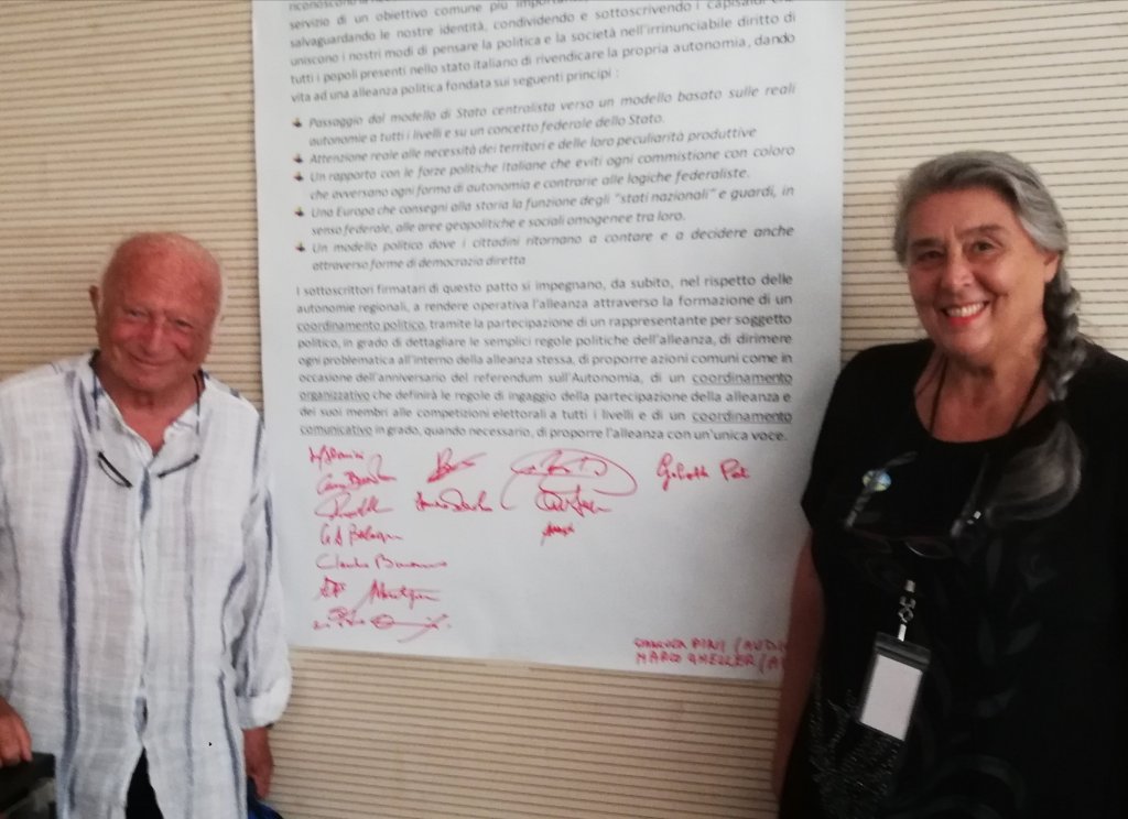 “Alla fine di giugno una ventina di associazioni politiche autonomiste presenti in Italia avevano firmato un patto finalizzato a lavorare assieme per organizzare in modo più logico il nostro paese, gravemente malato di “centralismo irrazionale e contro natura”.