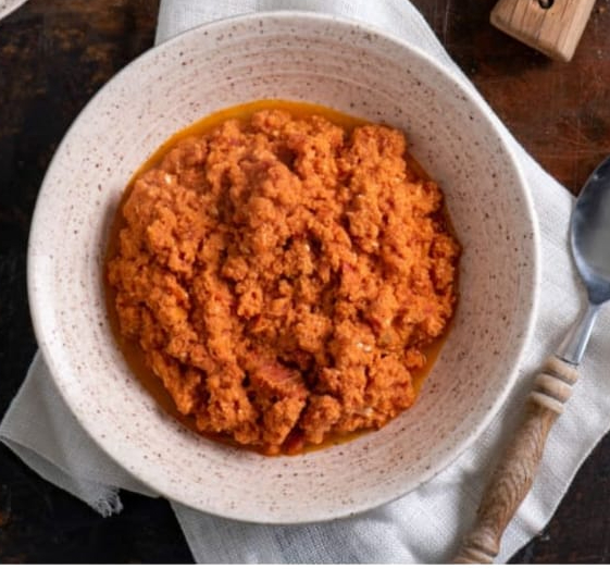 Si mangia in una scodella con le fette di pane impugnate al posto delle posate con la parte morbida che si imbeve di questa poltiglia rosata che è squisita e che, come dice un noto e simpatico “influencer” di feisbuc : << non si può togliere dalla bocca >>🤣
