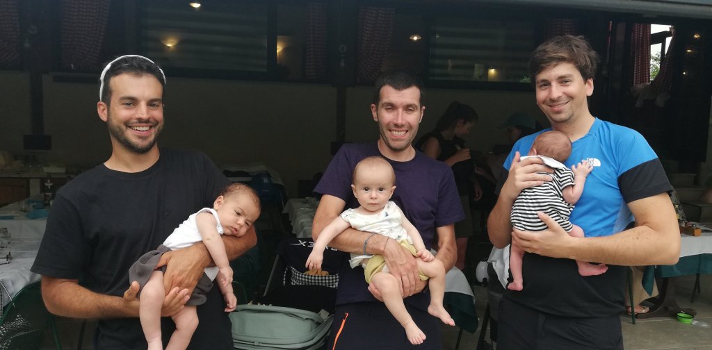 Gabriella Poli – Monzambano – I bebè hanno 1, 2 e 7 mesi. I papà, belli e felici, meno di 30 anni. Lo scatto è d’obbligo perché la scena merita. I pargoli in ordine sparso sono Tommaso, Giovanni e Ludovico.