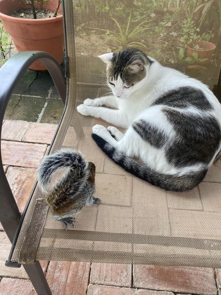 Ho dovuto stare attento che il mio gatto non lo vedesse perché lo avrebbe azzannato senza tanti complimenti, in fondo sembra un topolino e, per proteggerlo quando era solo, mi sono aiutato con un cesto della frutta di plastica capovolto a mo’ di gabbia. Ho provato a dargli dell’acqua e del latte in alcuni piattini ma, all’inizio non sembrava apprezzare, anche se ma poi l’acqua la gradiva. Poi ho provato con un pomodoro, però niente. Finalmente ha sembrato apprezzare un frutto del mio albero di jicaco, un piccolo frutto messicano di colore rosa e di sapore indefinito. Gli piaceva! Meno male che ne ho un albero intero! Poi ho cercato su internet cosa fare con un baby scoiattolo e la cosa che mi è sembrata più interessante è stata che i piccoli scoiattoli hanno bisogno del calore del corpo della madre. Quindi ho creato una copertina arrotolata a mo’ di nido in cui lasciarlo rifugiare ogni volta che ha freddo. E ogni tanto l’ho preso in mano per scaldarlo col mio calore.