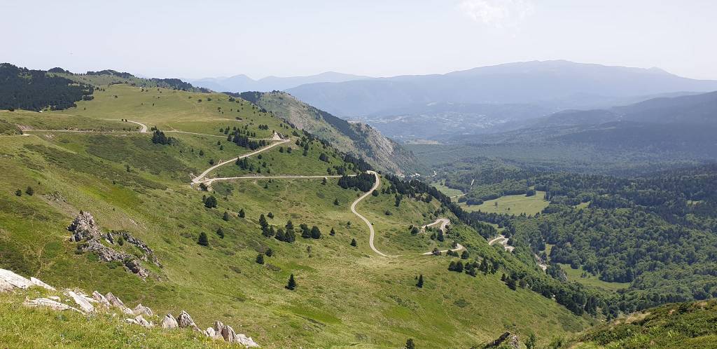 Simone Bertelli – 29 luglio 2024 – Pirenei giorno 3, 107 km e 2000metri di dislivello+: “fini de rire”… oggi colli e colletti del tour de France tra cui Port de Lers e Portet d’Aspet, belle chiese romaniche (purtroppo chiuse), bufale (gli animali non le bugie) pirenaiche, e una campagna di una eleganza e bellezza incantevoli. Dopo pranzo nel fondo valle un caldo folle, quasi 39⁰, unica soluzione bere ettolitri di acqua e tuffarsi nelle fontane e nei lavatoi. In cerca di un po’ di refrigerio per la notte siamo saliti ad un rifugio très chic a 1000 metri, conquistato dopo il Portet d’Aspet e 4km di sentiero nel bosco.