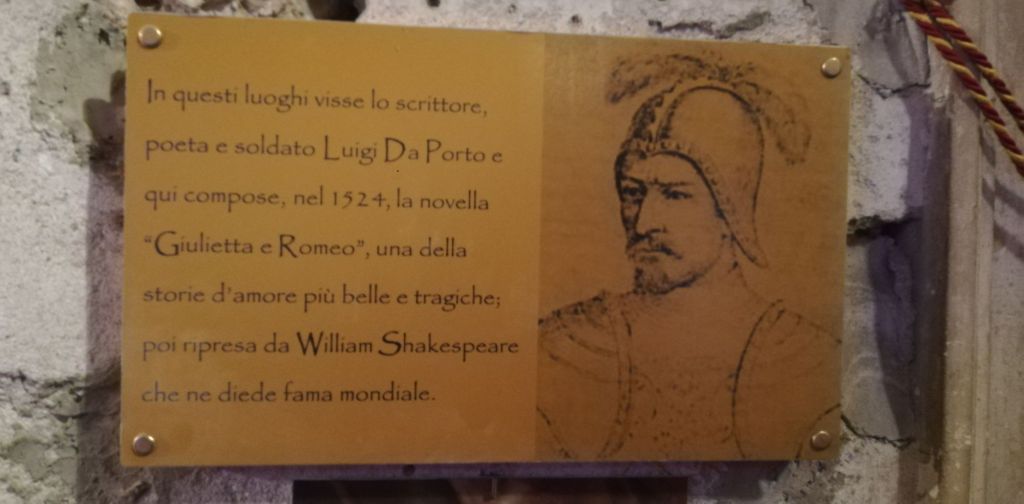 Qui visse Luigi Da Porto, come si definisce nel volantino della Pro Loco: “nobile, soldato, scrittore che nel 1517, di ritorno dalla guerra di Cambray, ferito in corpo e spirito, scrisse la Istoria novellamente ritrovata di due nobili amanti con la loro pietosa morte intervenuta già nella città di Verona nel tempo del Signor Bartolomeo Dalla Scala, ispirandosi alla sua triste vicenda di innamorato respinto dalla cugina Lucina Savorgnan”.