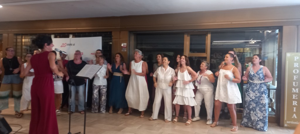Il festeggiamento si è concluso con le note di “I Will Follow Him” [Chariot] splendidamente interpretato da un coro femminile e maschile che, sotto mentite spoglie, partecipavano all’anniversario, un magico coro diretto dalla cantante, Laura.