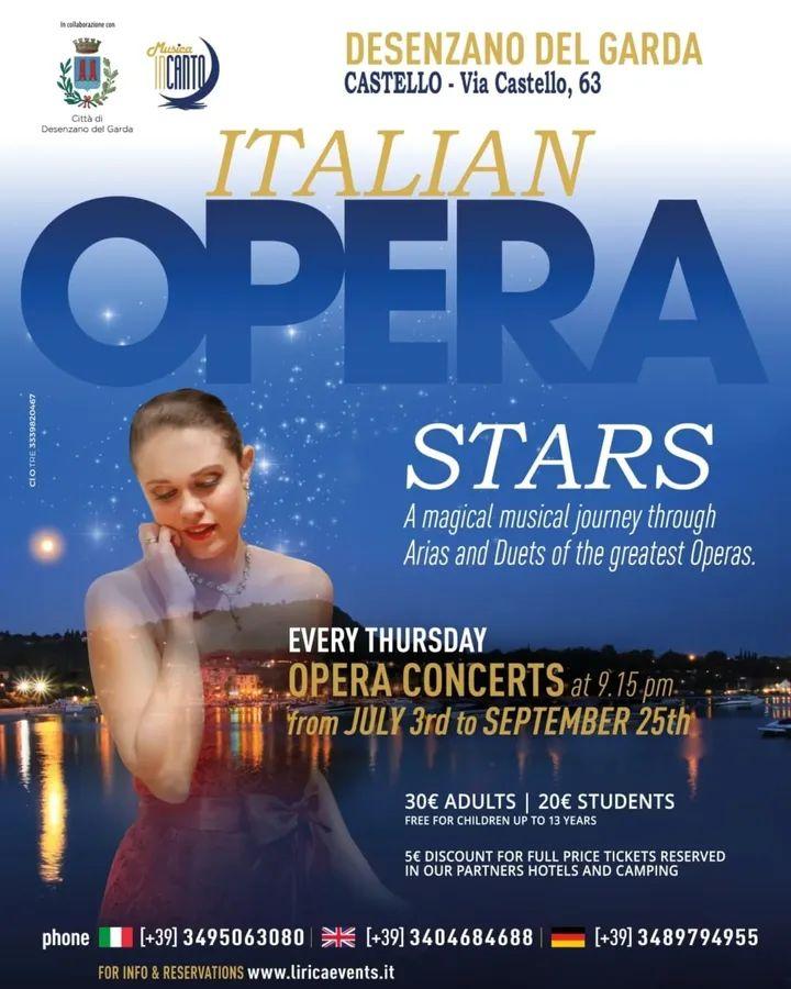 Nelly Gastaldelli – Desenzano – Ha preso il via la settima edizione di “Italian Opera Stars” la stagione lirica estiva dell’Associazione Musica Incanto. Tutti i giovedì, dal 3 Luglio al 25 Settembre 2025, presso il Castello di Desenzano del Garda si svolgono spettacoli dedicati all’Opera Lirica che emozioneranno il pubblico grazie alle performance di eccezionali artisti che calcano i palcoscenici dei maggiori teatri d’Opera italiani e internazionali. 13 i concerti della stagione lirica estiva “Le stelle dell’Opera Italiana” 2025. L’orario d’inizio di tutti i concerti sarà sempre alle 21:15 con fine prevista alle 22:45.