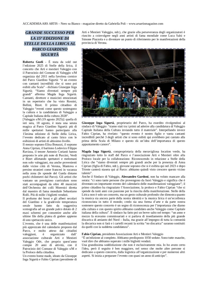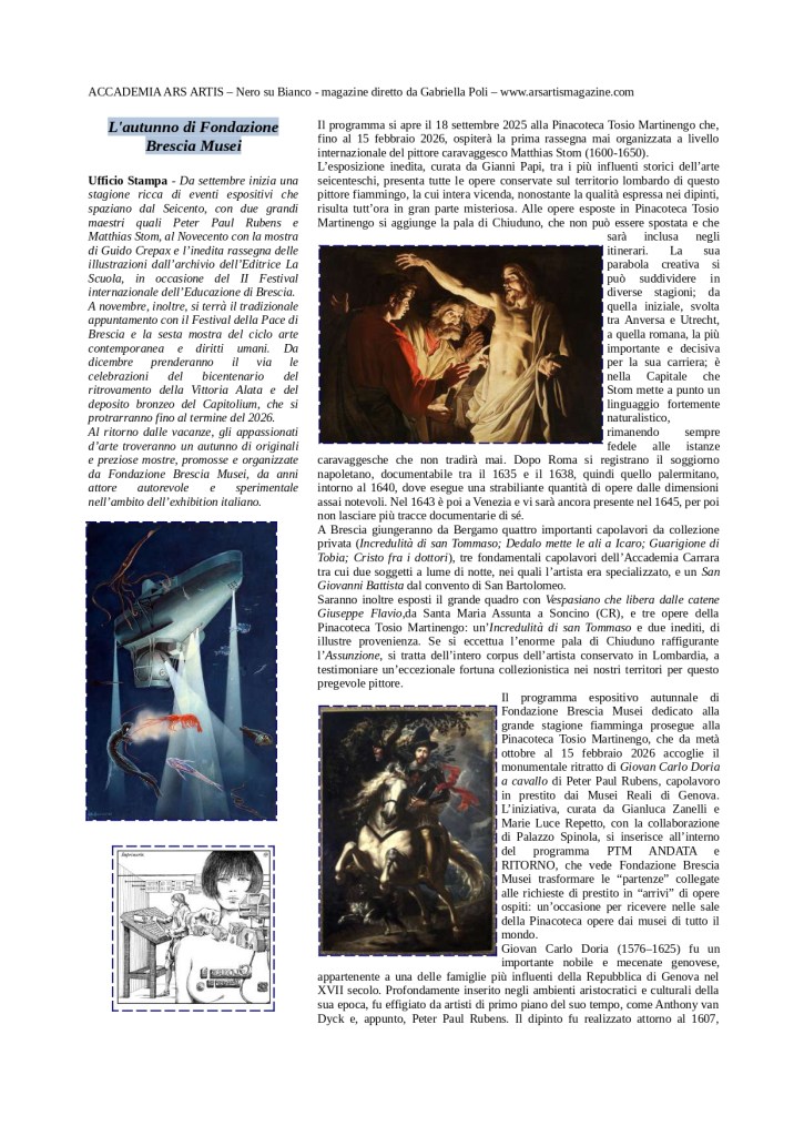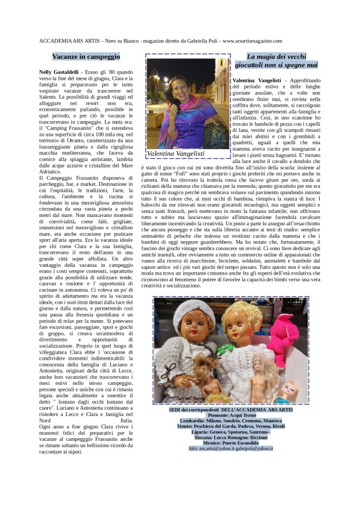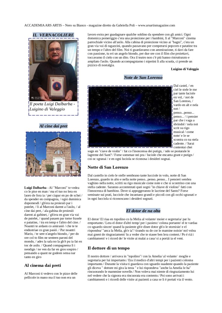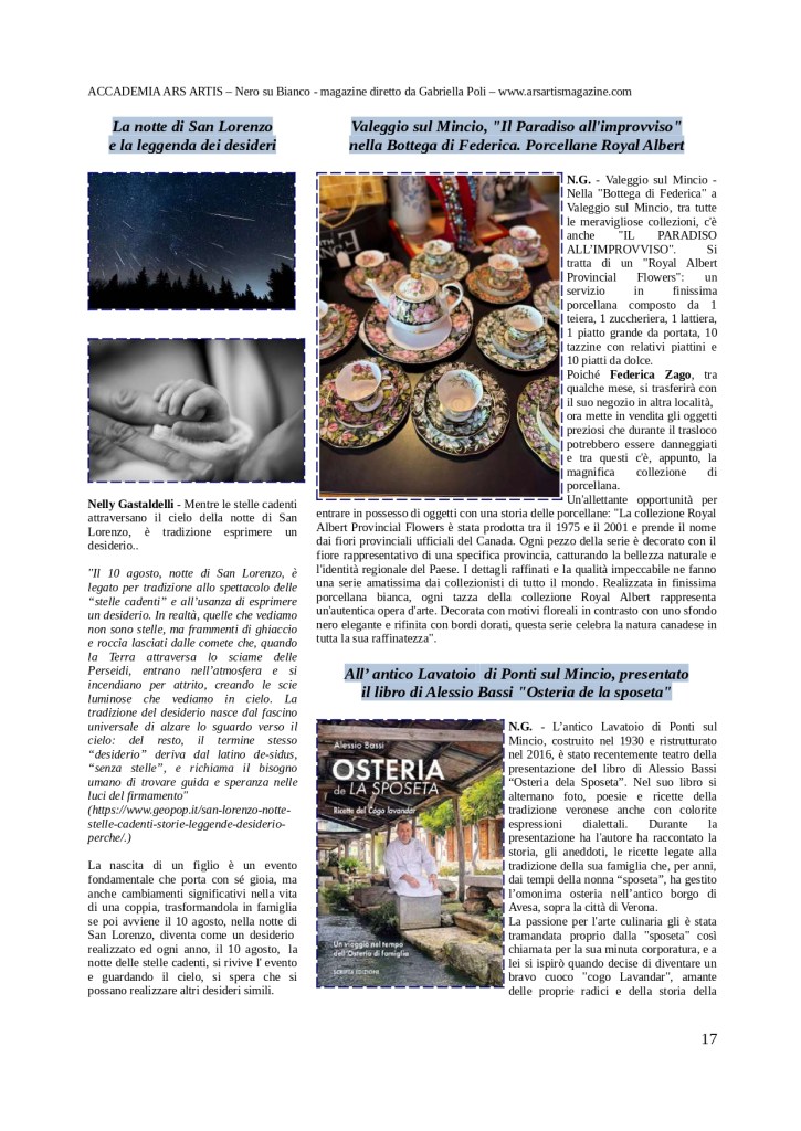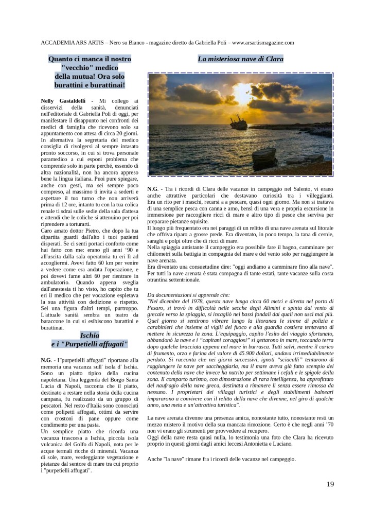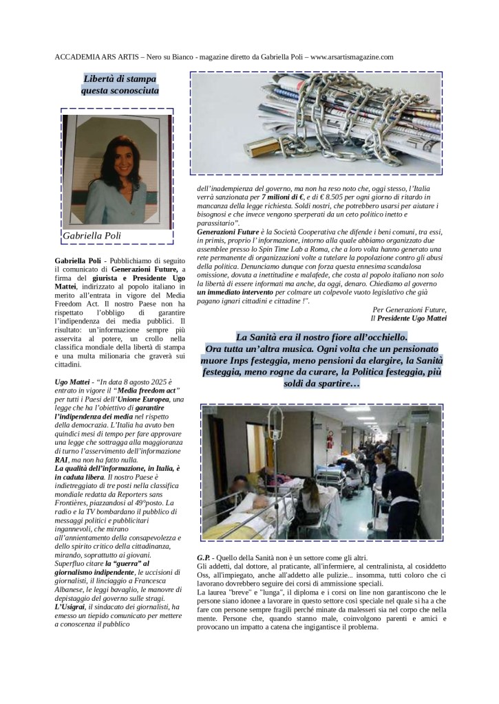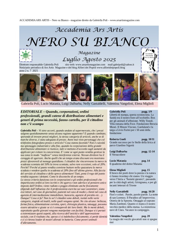 Gabriella Poli – Ecco di seguito le pagine del consueto notiziario cartaceo mensile Ars Artis Magazine “Nero su Bianco”. Buona lettura