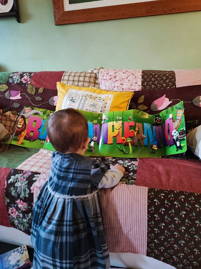 Vestita come una principessa, come ho già detto in apertura, con un abitino a rettangoli, salgo in auto e mi reco dai nonni Stocco, Carla e Franco, dove mi attende anche la mia biografa Poli. Sono curiosa di vedere cosa mi hanno preparato per festeggiare il primo anniversario.