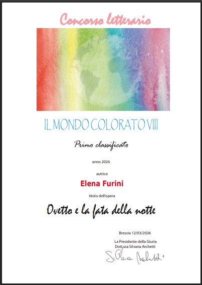 Marzo 2026: Prima classificata al Concorso “Il Mondo Colorato VIII” con la storia scritta e