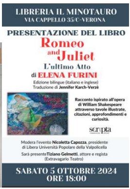 5 Ottobre 2024: presentazione del libro/saggio illustrato e bilingue “Romeo and Juliet-L’ultimo