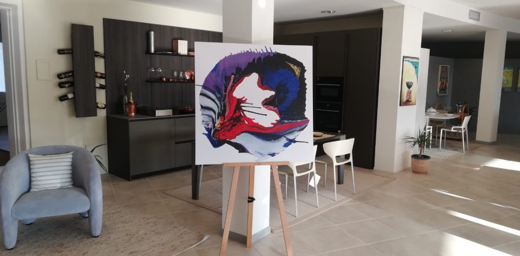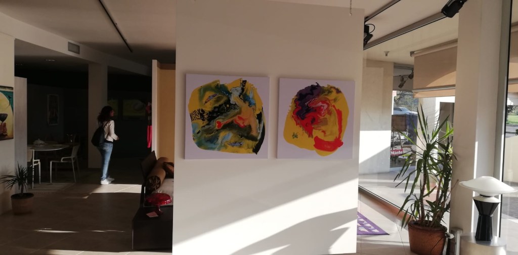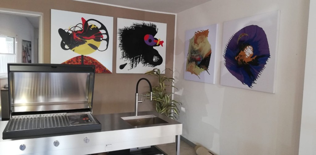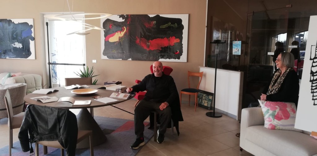 Così è possibile ammirare nello show room, solitamente dedicato all’arredamento da terra anche quello da parete. “Più di 30 opere esposte che si mimetizzano tra un salotto, una camera da letto ed un tinello, creando un tutt’uno”. Le tele sono in parte recenti, realizzate dal 2021 ad oggi, ed in parte recuperate dall’archivio degli anni ‘70, quando l’artista aveva lo studio a Peschiera.